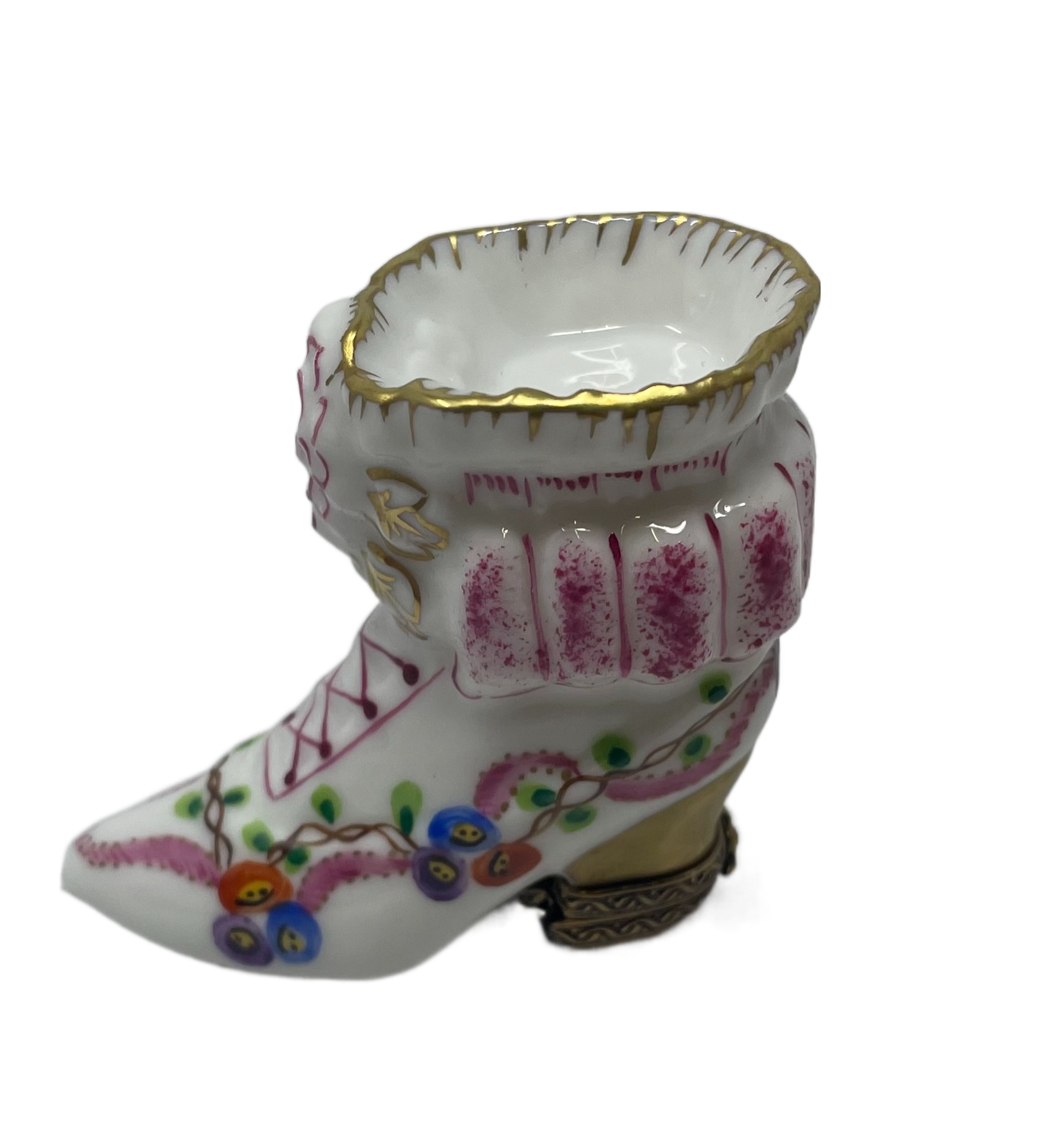 Blooming Elegance: Limoges Box in the Shape of a Floral High Top Shoe