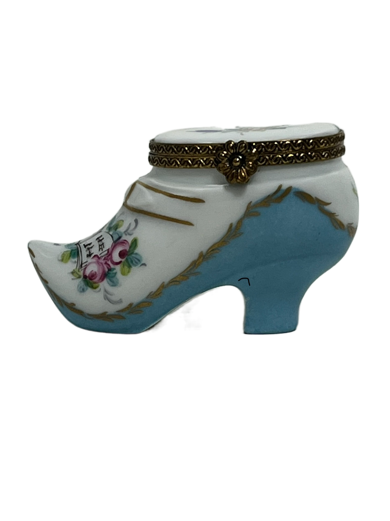 Blossom Elegance: Baby Blue Sevres-inspired Women's Shoe Limoges Box
