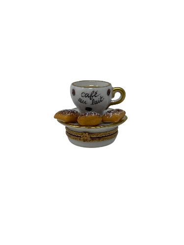 Café au Lait Charm: Limoges Box with Beignet Trio