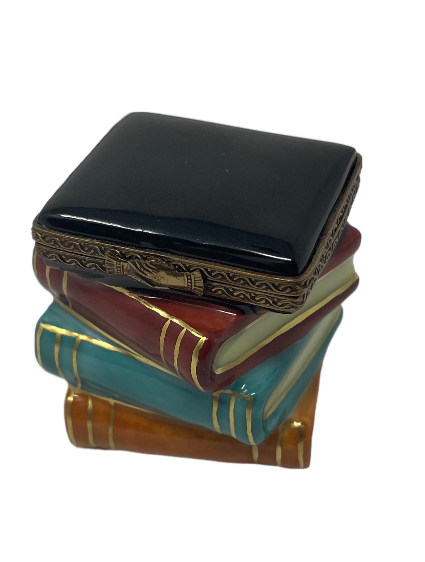 Colorful Tales: Limoges Box of a Stacked Book Collection