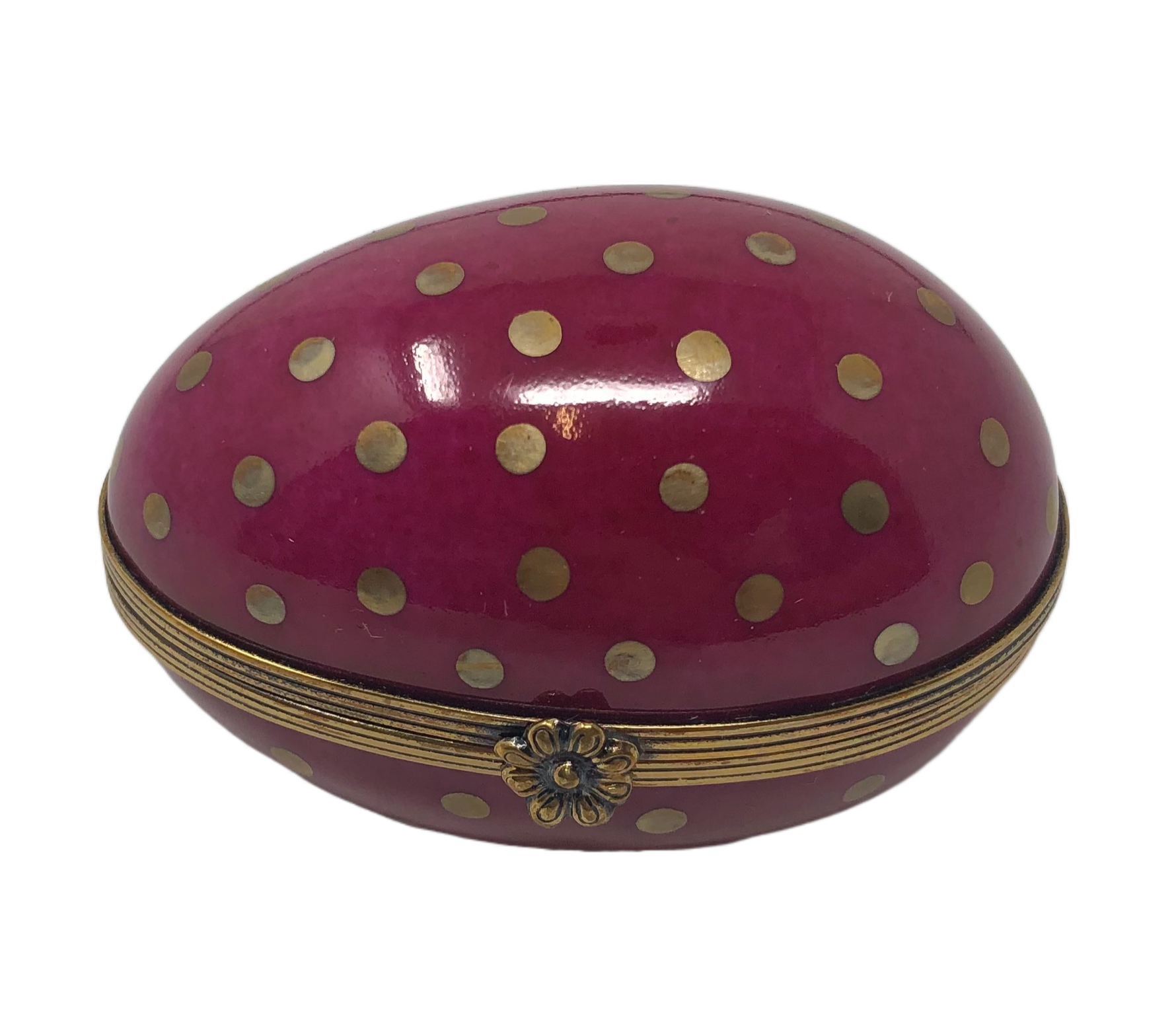 Dazzling Delights: Limoges Box - Maroon Egg with Golden Polka Dots