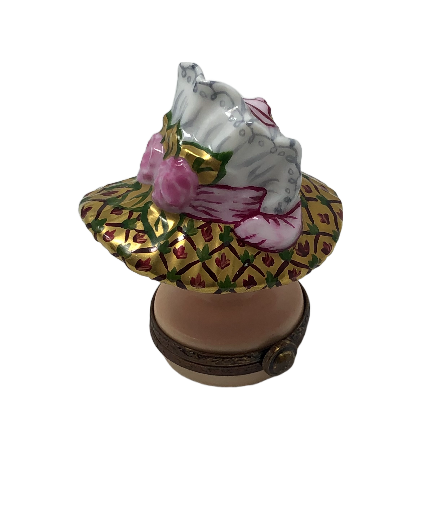 Elegance in Bloom: White Hat with Golden Brim Limoges Box