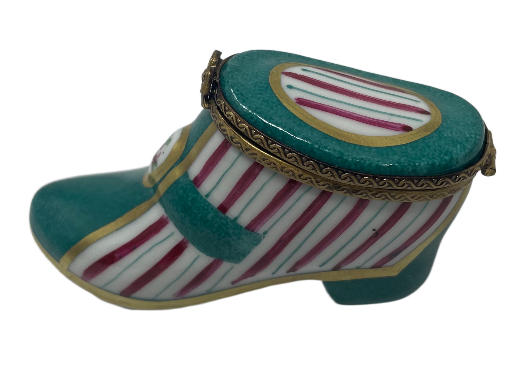 Elegance in Stripes: Teal Woman's Shoe Limoges Box