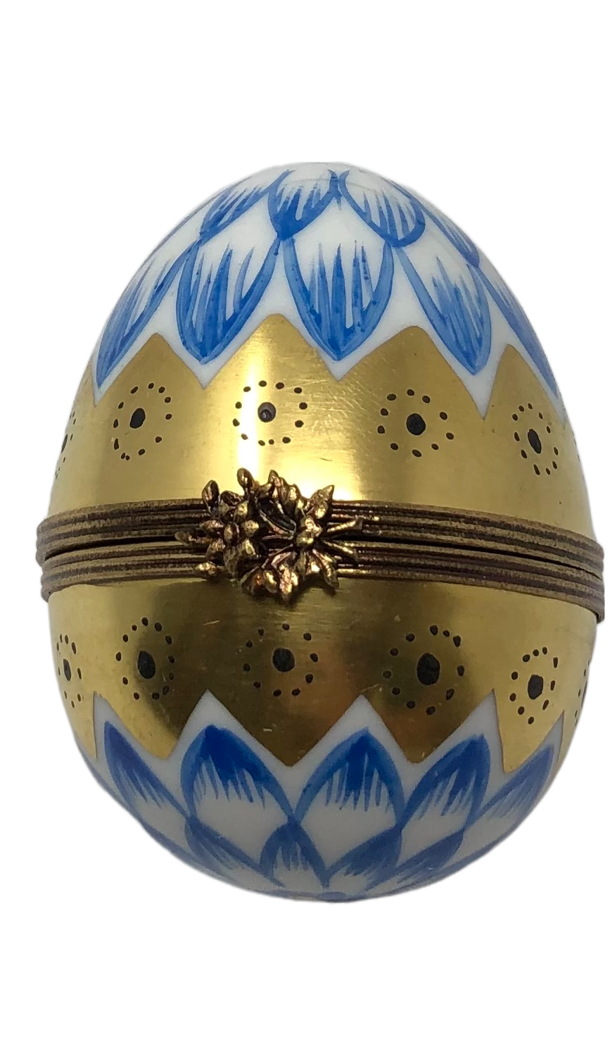 Elegance Unleashed: Golden Feathered Limoges Egg Box