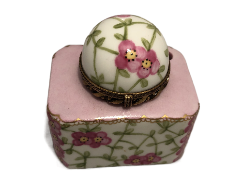 Elegant Blooms: Hand-Painted Limoges Flower Trinket Box - A Delicate Pink Blossom