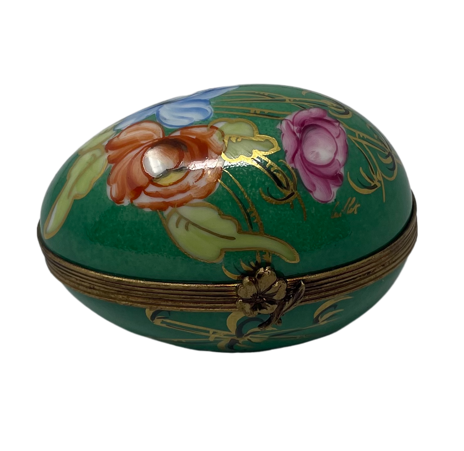 Enchanted Garden: Vibrant Green Floral Egg Limoges Box