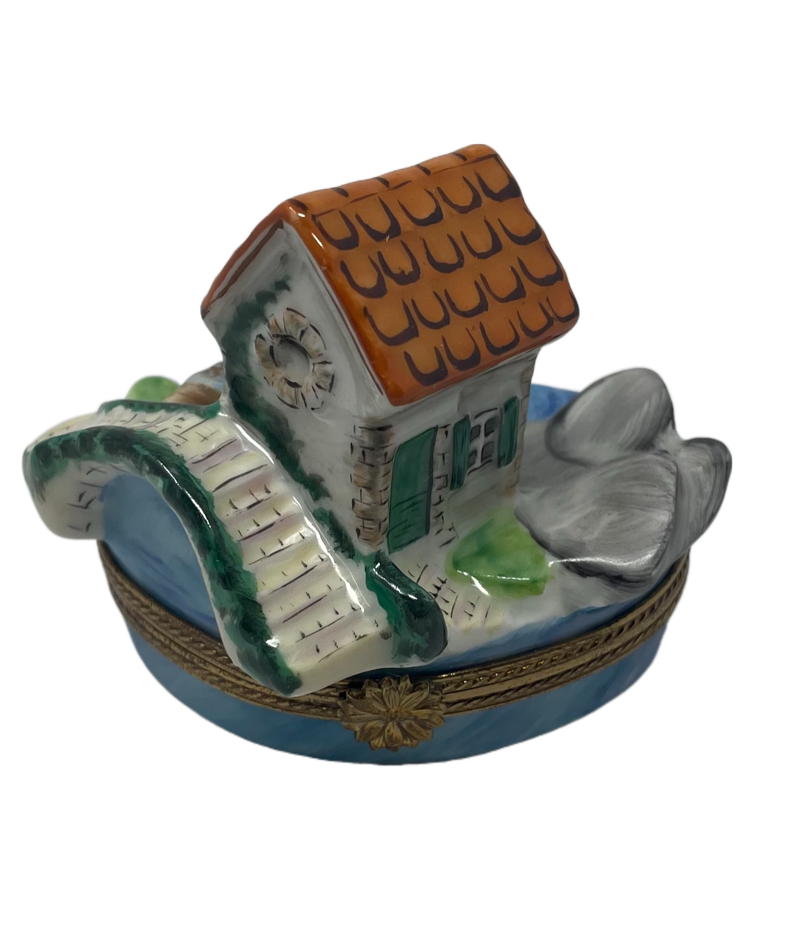 Enchanted Stone Haven: Limoges Box with Scenic Stone House and Bridge