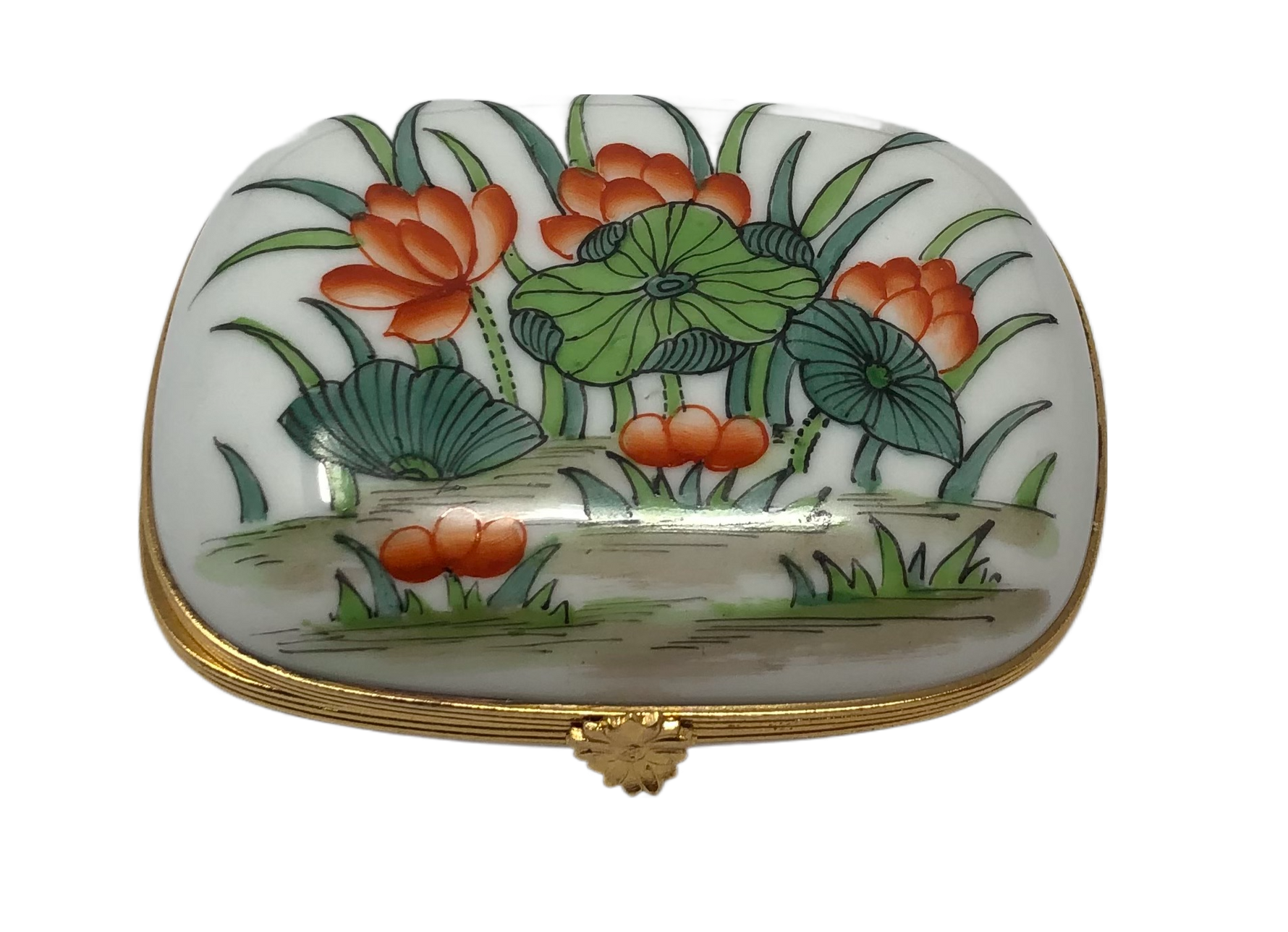 Enchanting Oasis: Green & Orange Oriental Garden Limoges Box