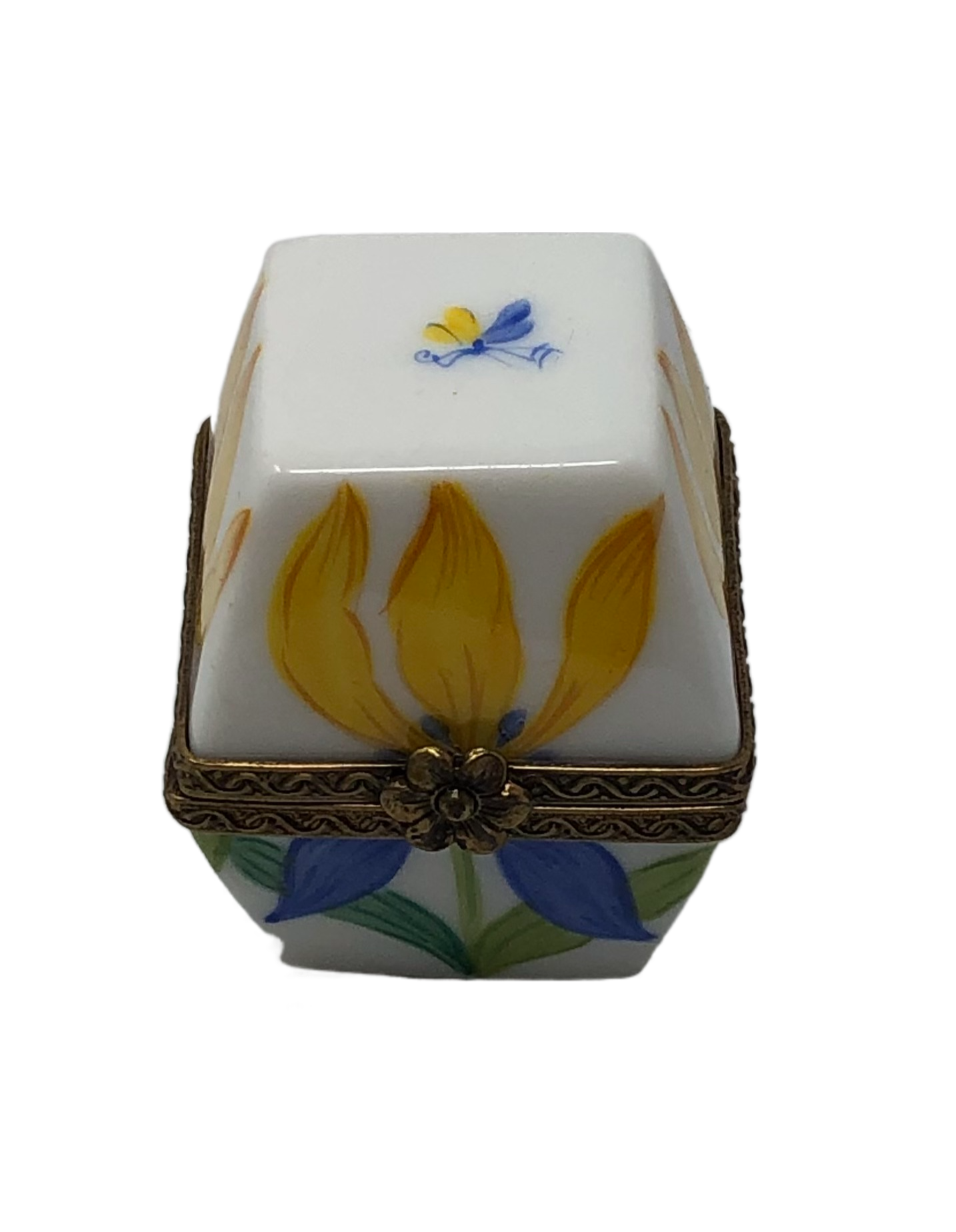 Fire and Ice Blooms: Blue and Yellow/Orange Flower Limoges Box