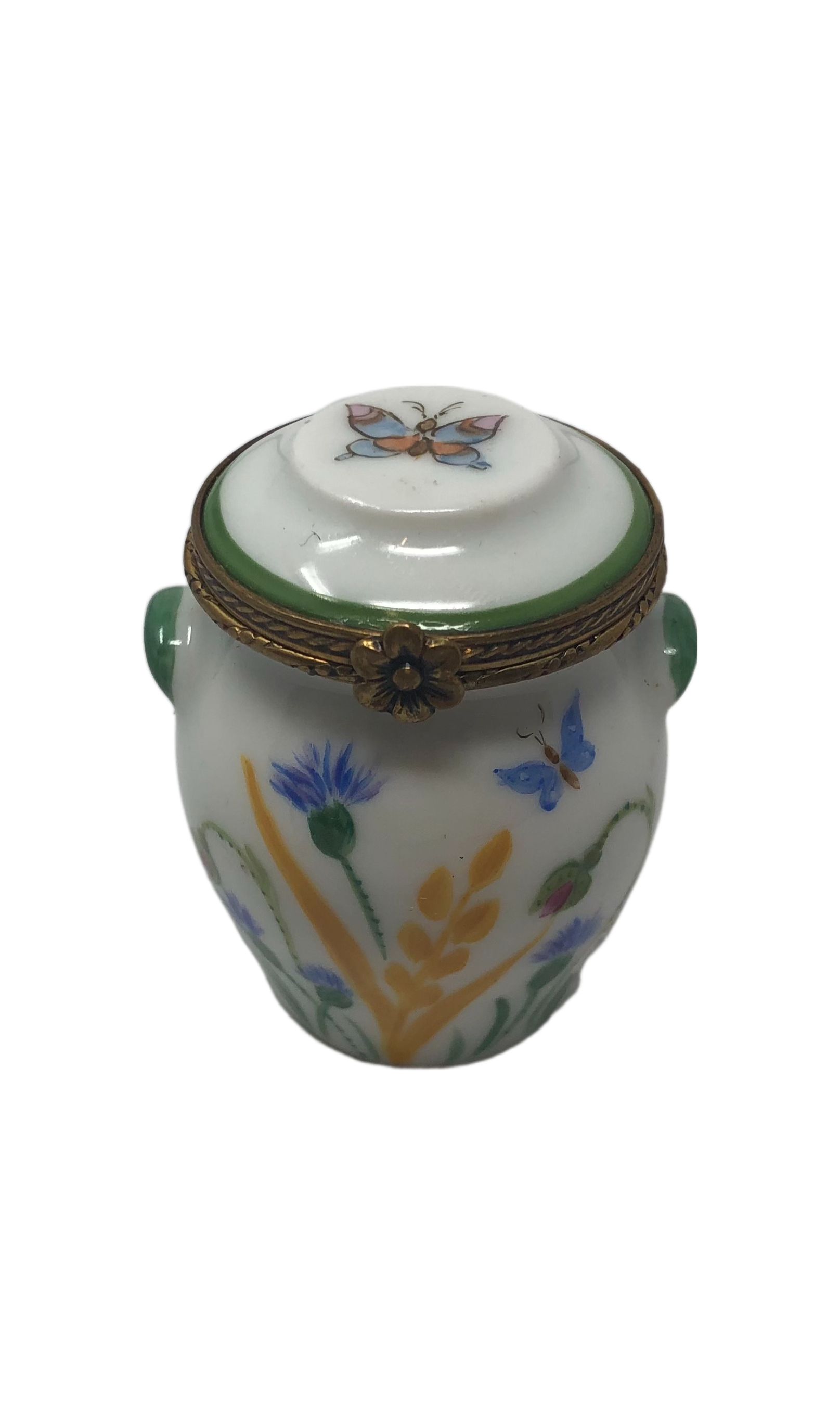 Floral Whimsy - Hand-Painted Limoges Pot with Butterfly Accents