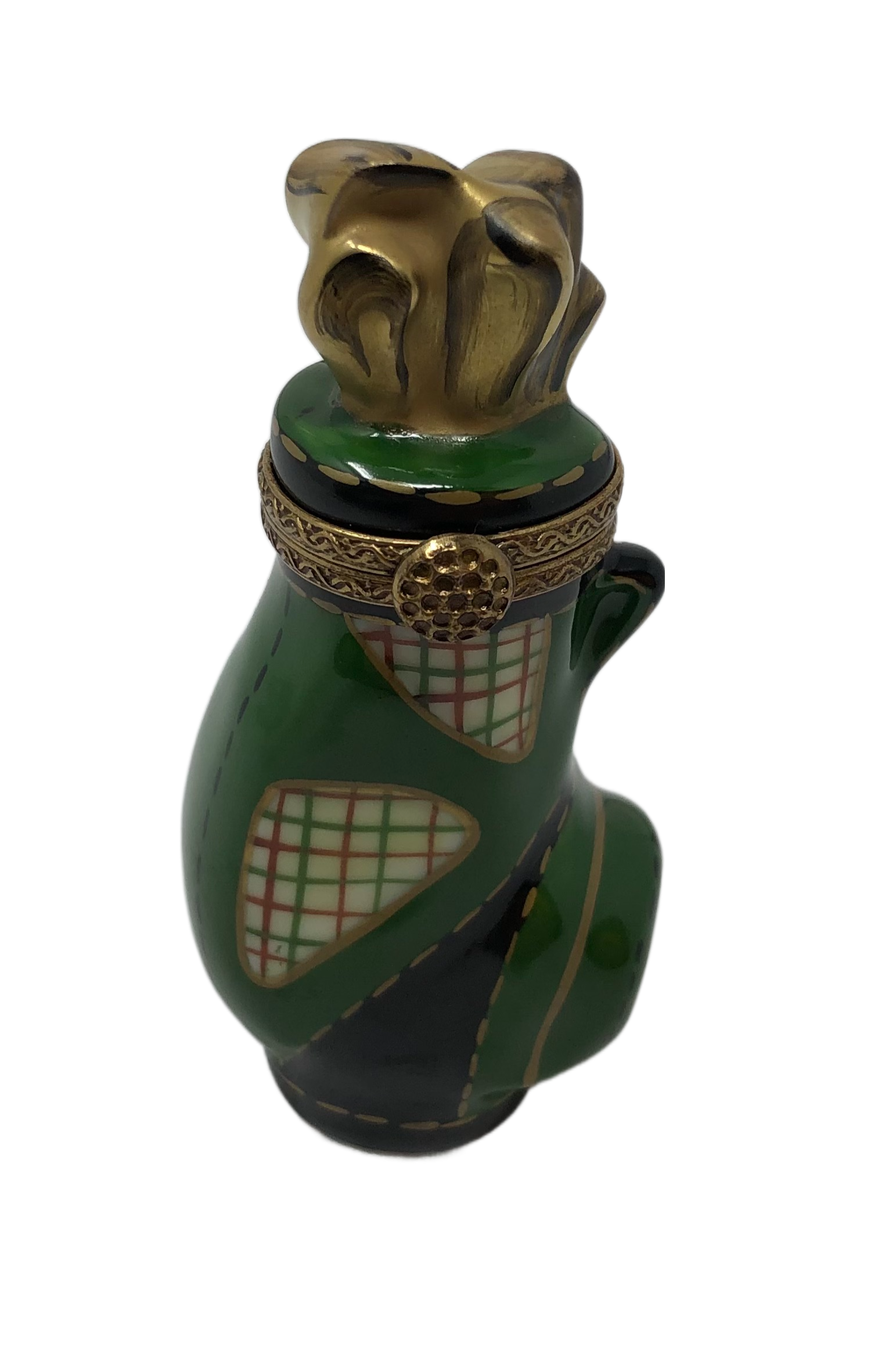 Fore Style: Green Golf Bag Limoges Box with Golden Clubs