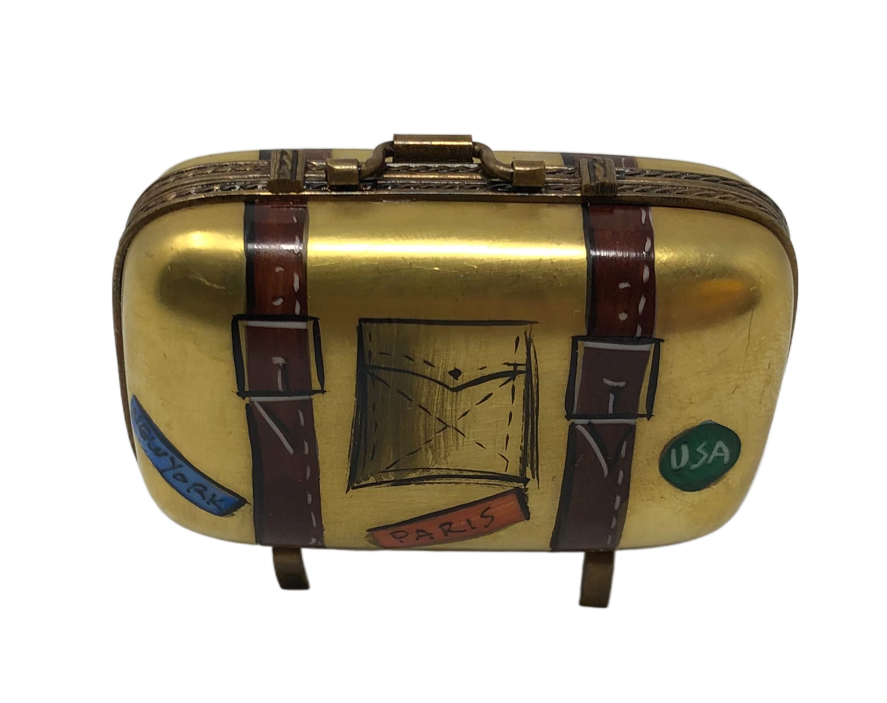 Globetrotter's Delight: Golden Suitcase Limoges Box