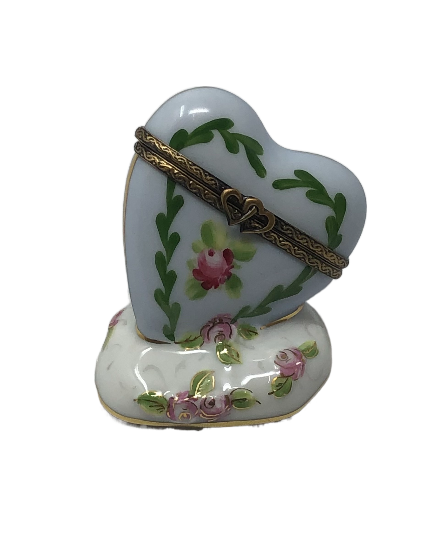 Heavenly Roses - Hand-Painted Heart Limoges Box