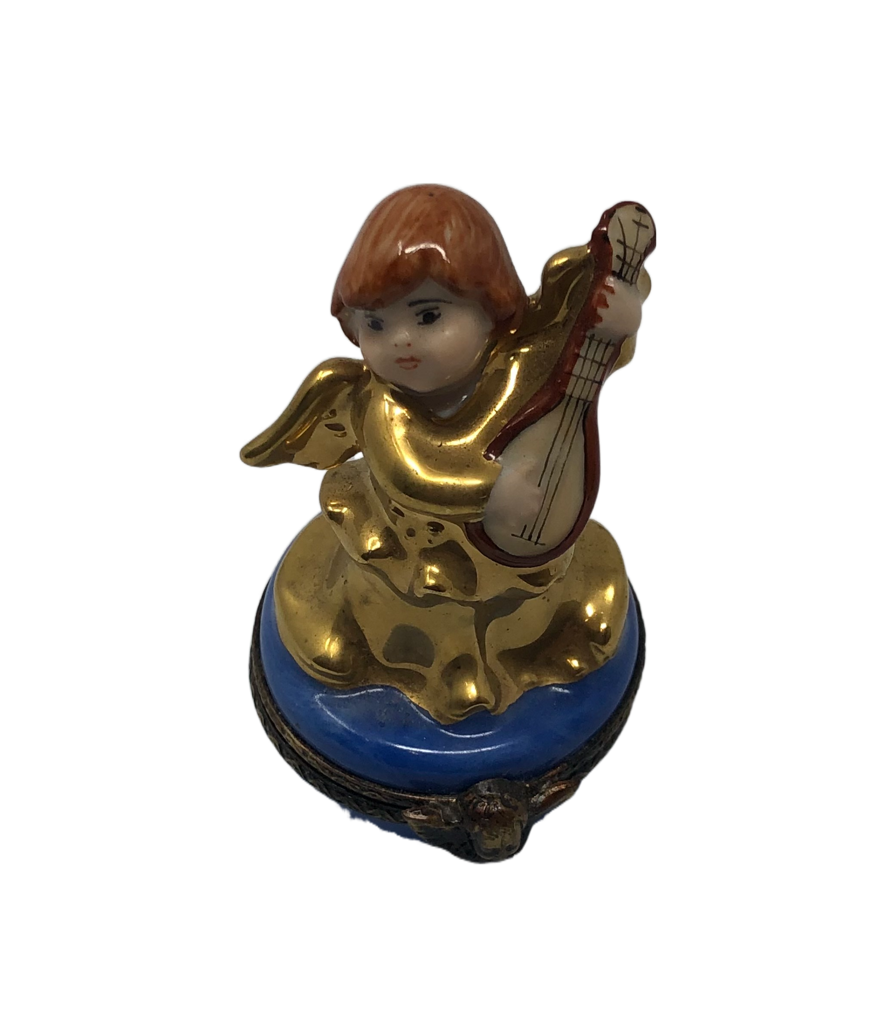 Heavenly Serenade - Limoges Box: Golden Angel Playing the Lute