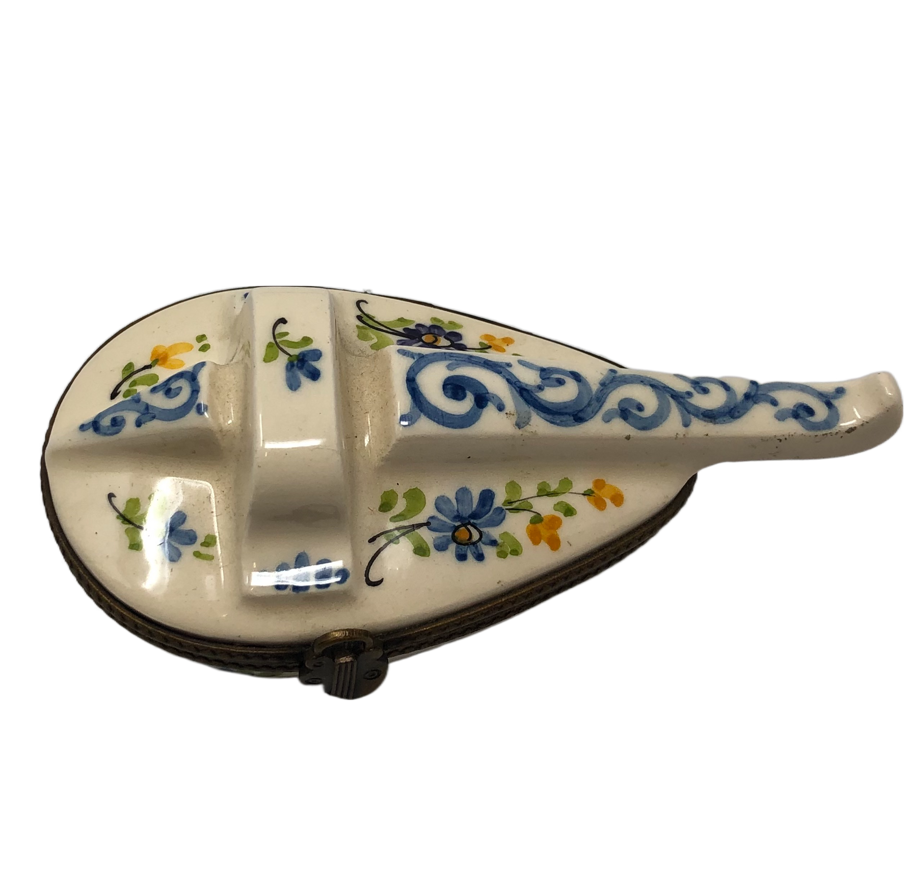 Melodic Blooms - Limoges Box: White Lute with Blue Floral Accents