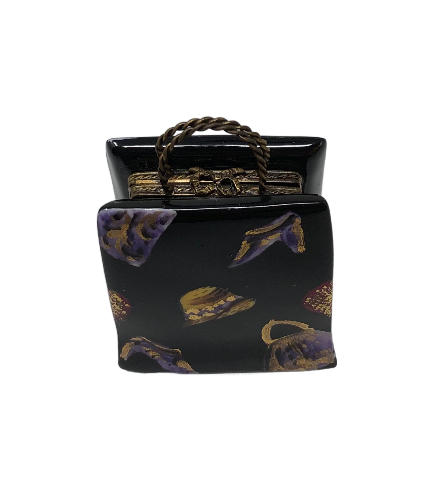 Midnight Glamour: Purse Shaped Limoges Box with Purple and Gold Accents