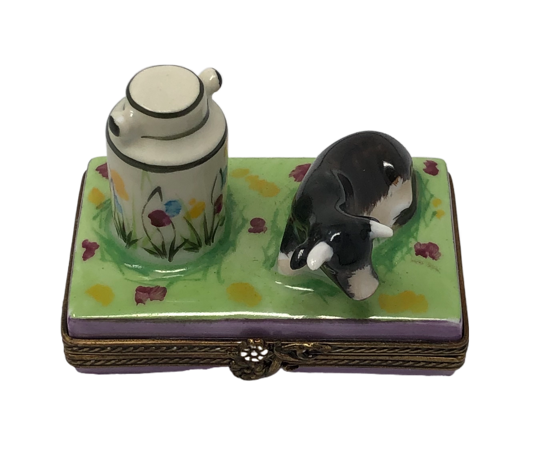 Moo-velous Charm: Hand-Painted Limoges Box with Adorable Cow and Milk Bottle