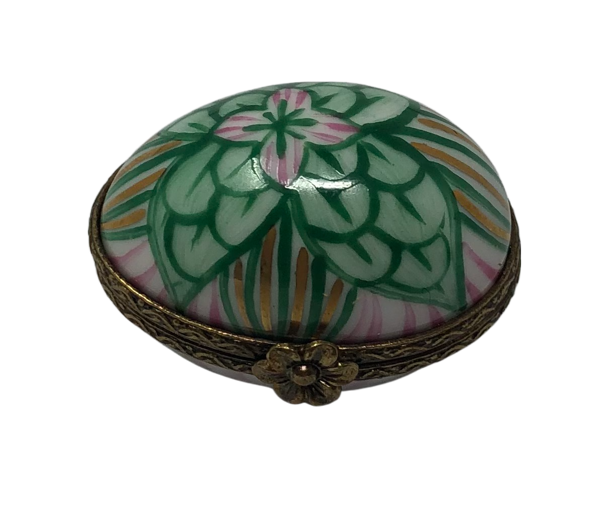 Mosaic Garden: Green and Pink Leaf Egg Limoges Box
