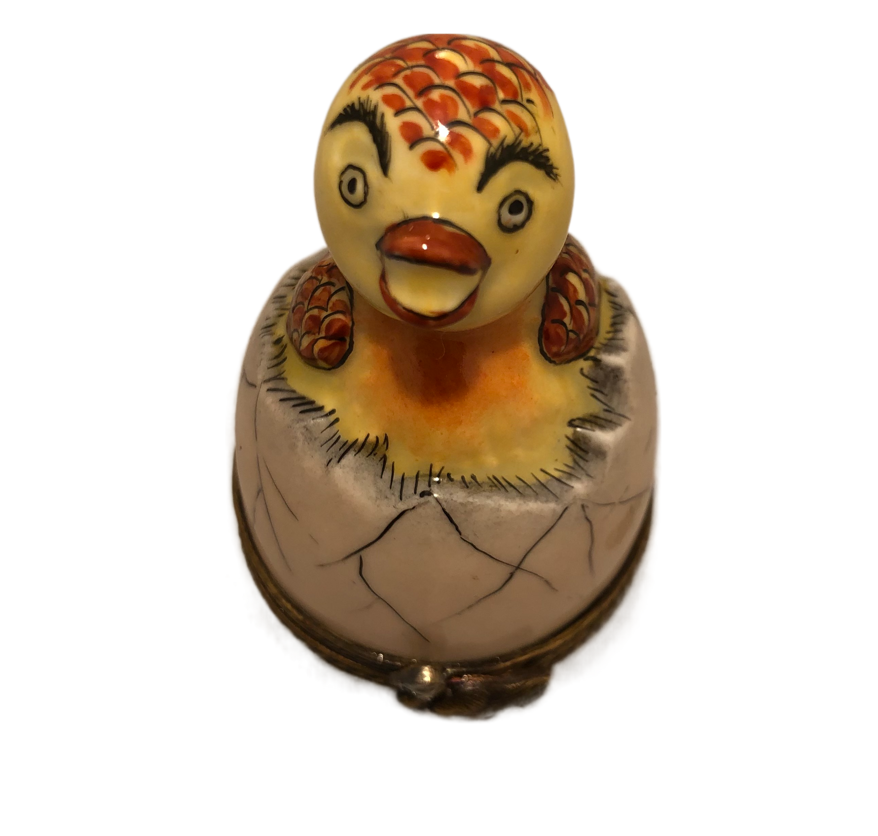 New Beginnings: Hand-Painted Limoges Chick Hatching Egg Keepsake Box - A Celebration of Joyful Growth