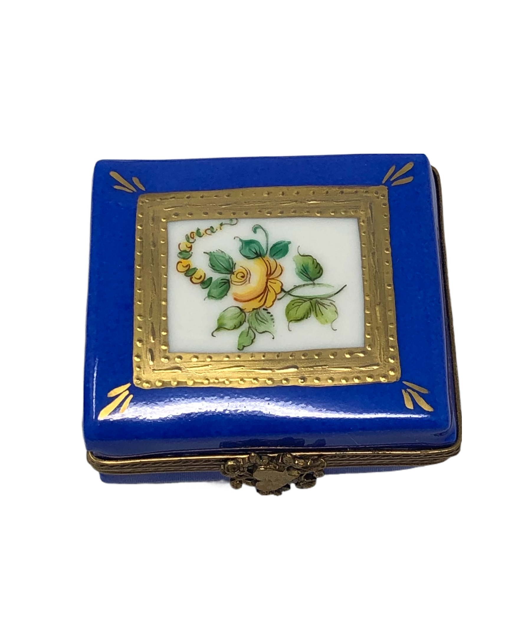 Immerse yourself in the beauty of nature with our exquisite Limoges Box in the shape of a rectangular portrait featuring a vibrant yellow flower. This hand-painted collectible showcases the intricate details of the flower, capturing its delicate petals and radiant colors with remarkable precision.