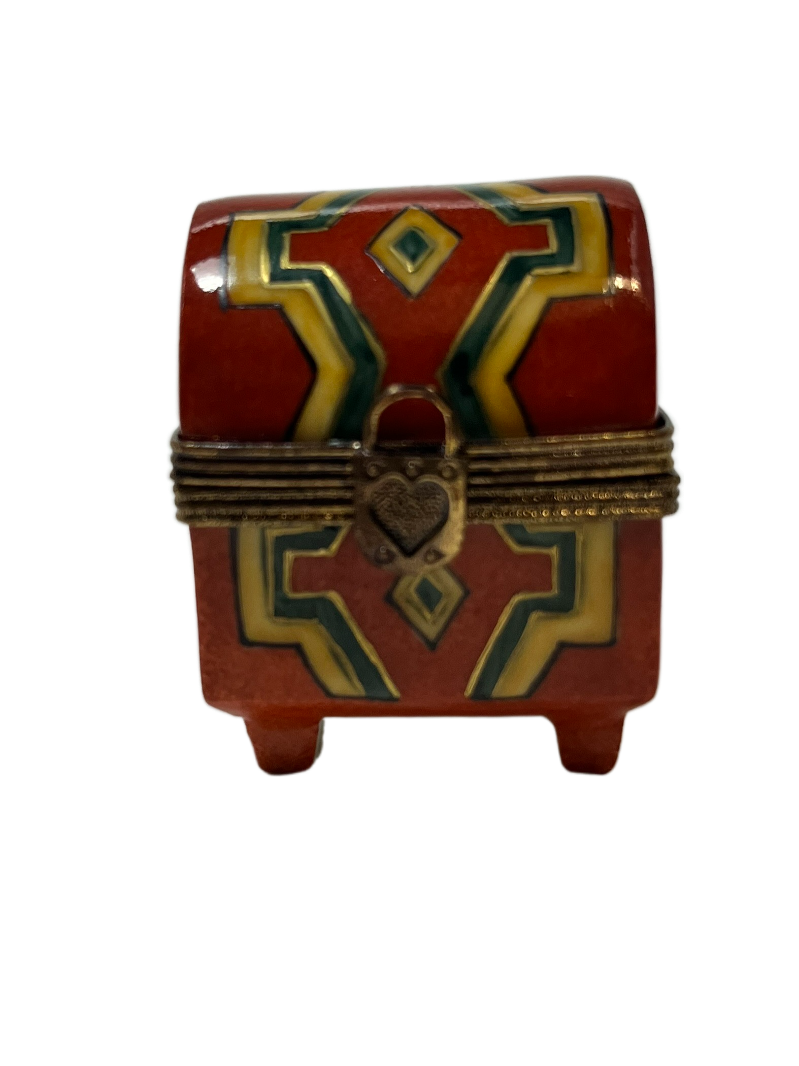 Radiant Treasures: Limoges Box - Red and Yellow Diamond Chest