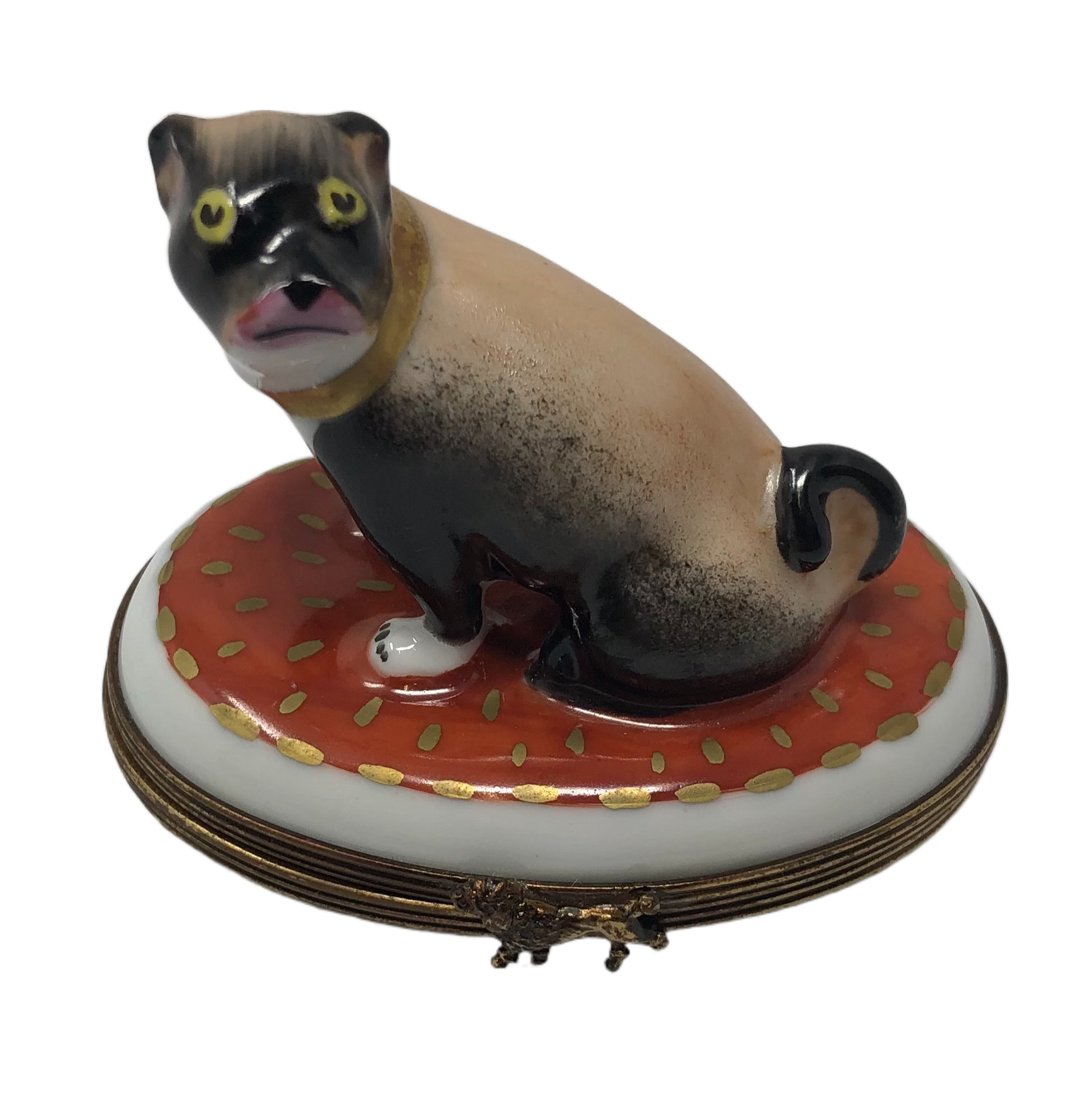 Regal Companion: Limoges Box - Golden Collar Dog on Red Mat