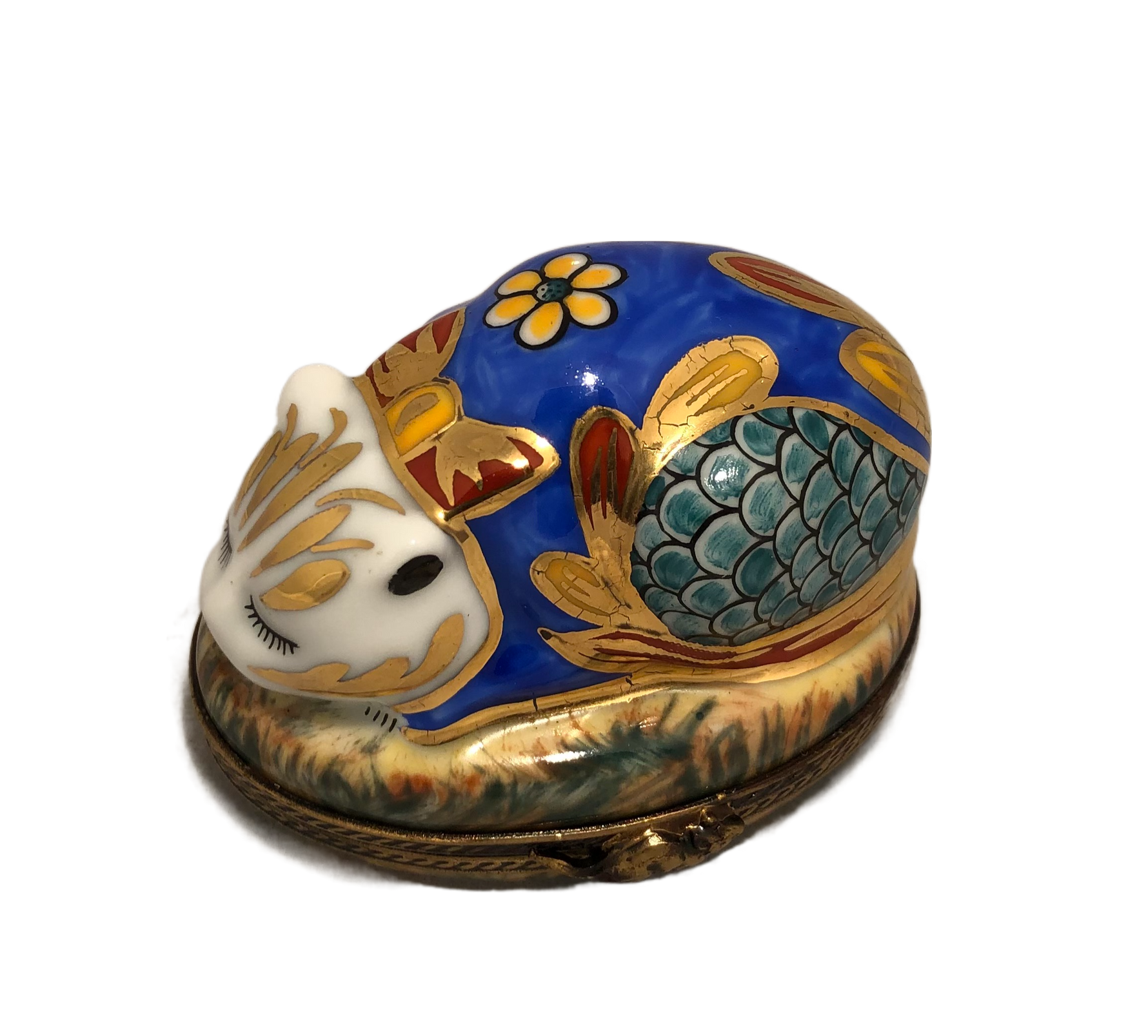 Display this Limoges Box proudly in your home or offer it as a unique and thoughtful gift to a cat lover or collector. Let the regal elegance and charming presence of this resting white cat Limoges Box bring a touch of sophistication to your space.