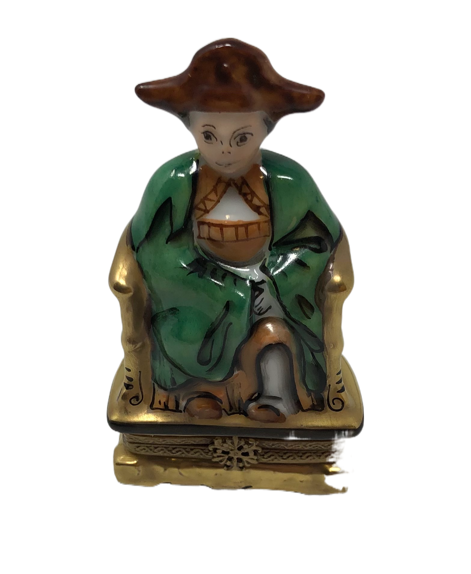 Regal Resplendence: Oriental Man on Green Throne Limoges Box
