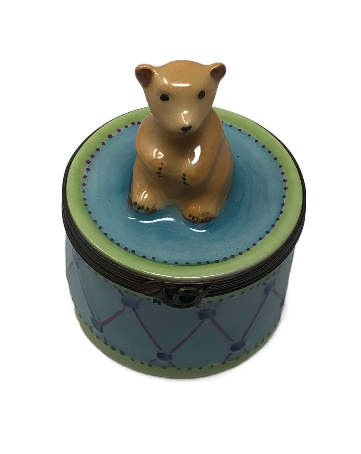 Rhythmic Melodies: Bear on Blue & Green Snare Drum Limoges Box