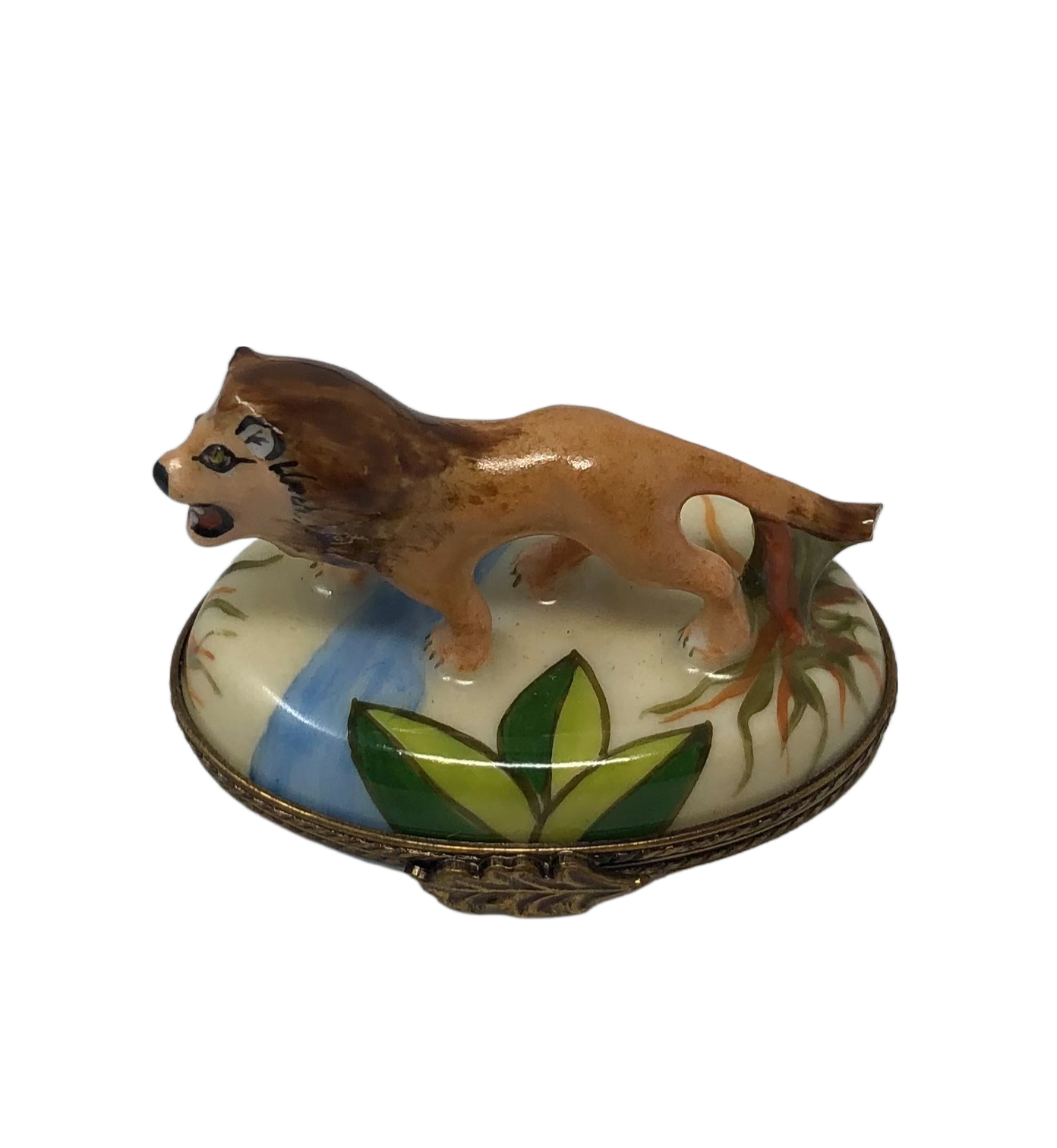 Roaring Majesty: Lion by the Riverside Limoges Box