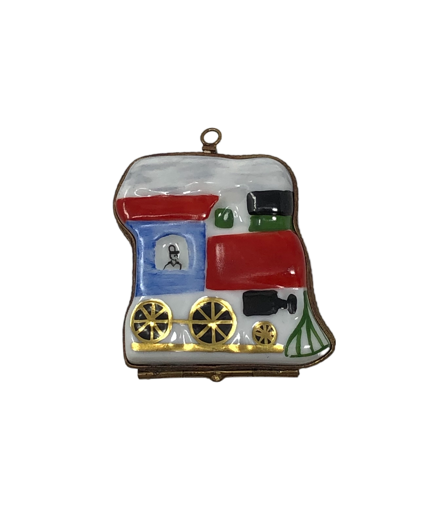 Step aboard the Royal Express and embark on a whimsical journey with our captivating Limoges box. Shaped like a charming blue and red train, this exquisite piece showcases intricate details and fine craftsmanship. The vibrant colors bring the train to life, while the golden wheels add a touch of elegance and sophistication. Lift the hinged lid to reveal a hidden compartment, a perfect place to store your tiny treasures. Hand-painted with meticulous attention to detail, this Limoges box is a testament to the artistry of our skilled artisans. Whether you're a train enthusiast, a collector, or seeking a unique gift, the Royal Express Limoges Box is sure to delight and enchant. All aboard for a journey of timeless charm and elegance!