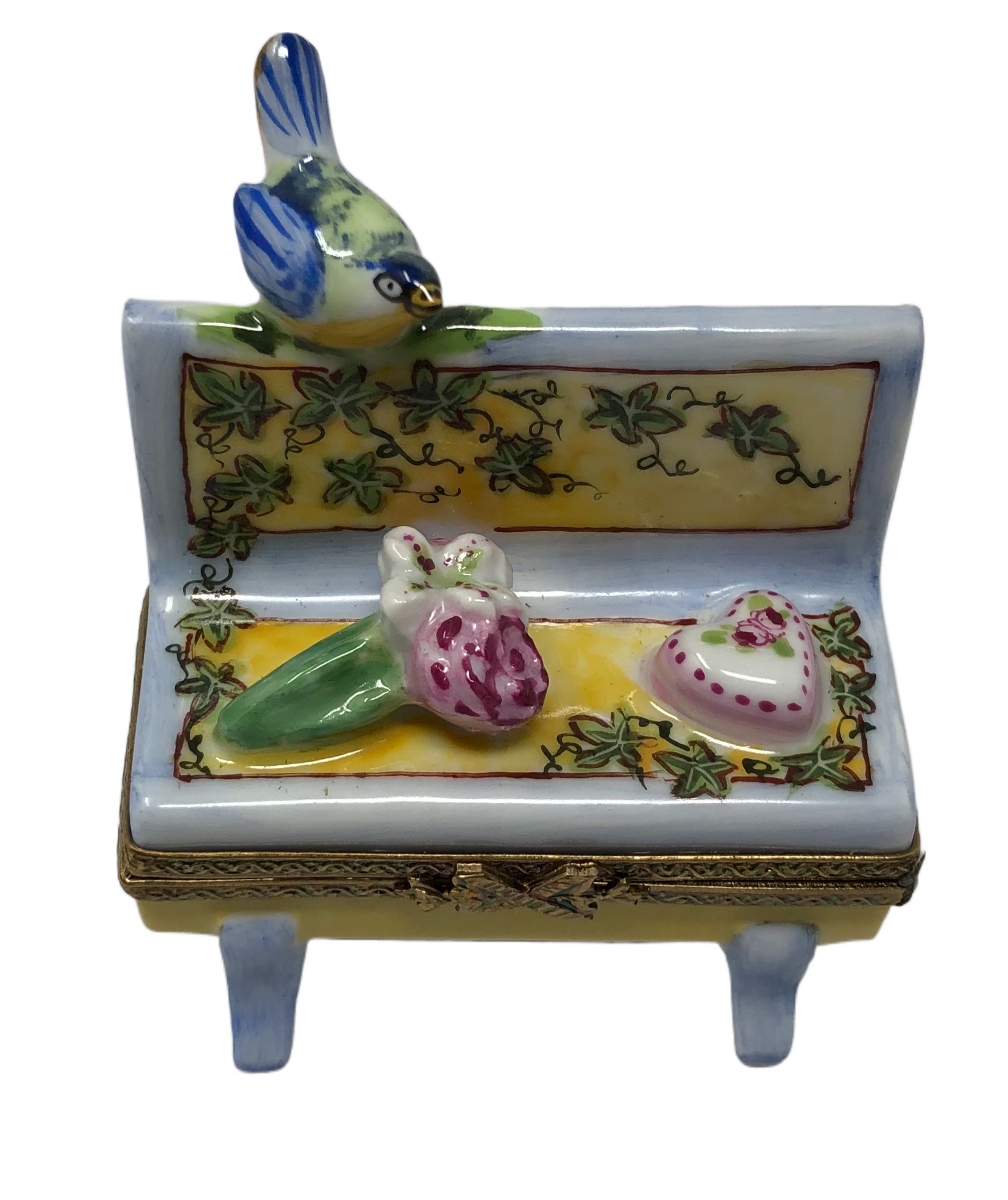 Serene Harmony: Blue Bird and Yellow Park Bench Limoges Box