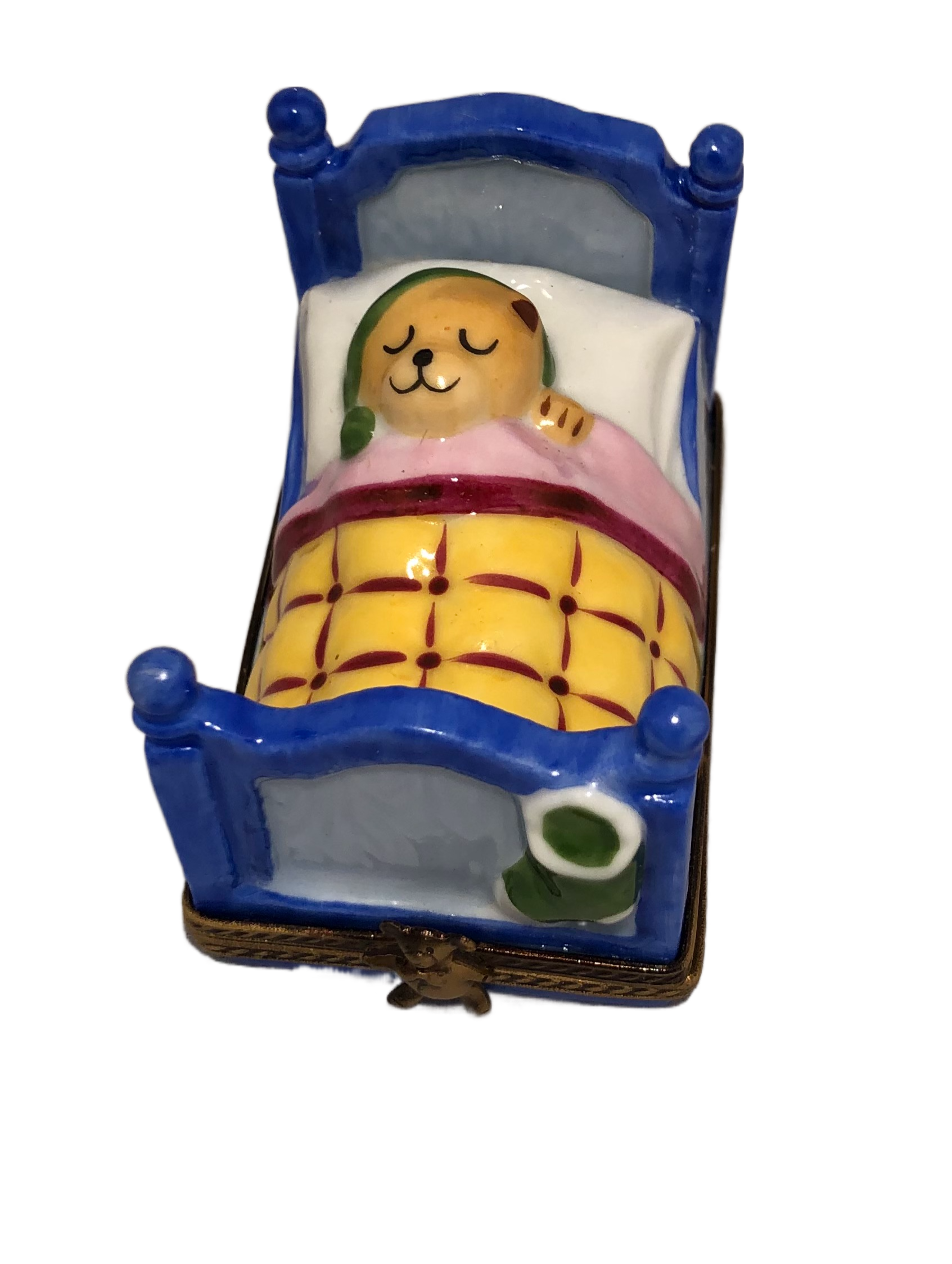 Sleepy Bear in Blue Bed: Hand-Painted Limoges Box