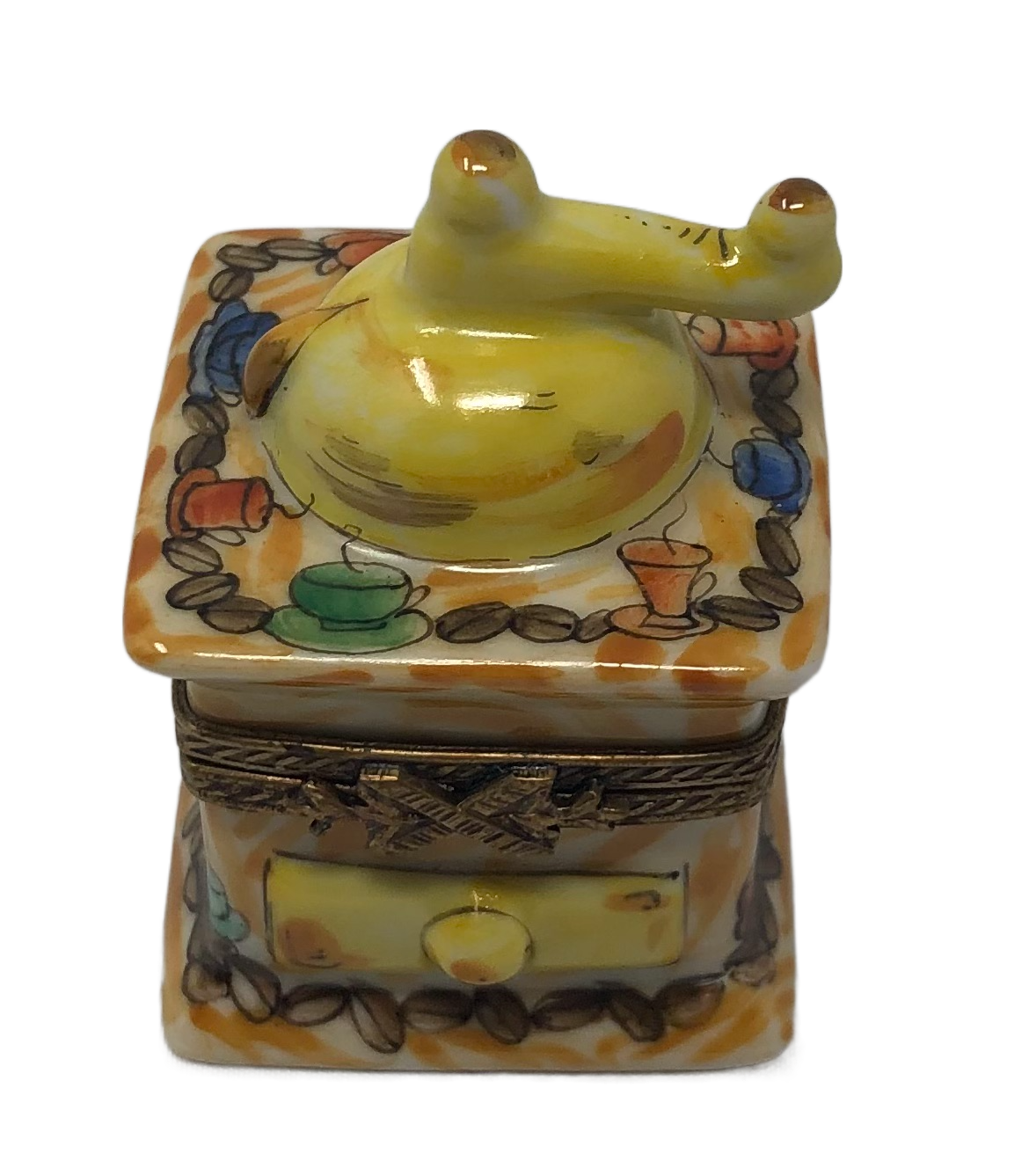 Sunrise Brew: Orange and Yellow Coffee Grinder Limoges Box