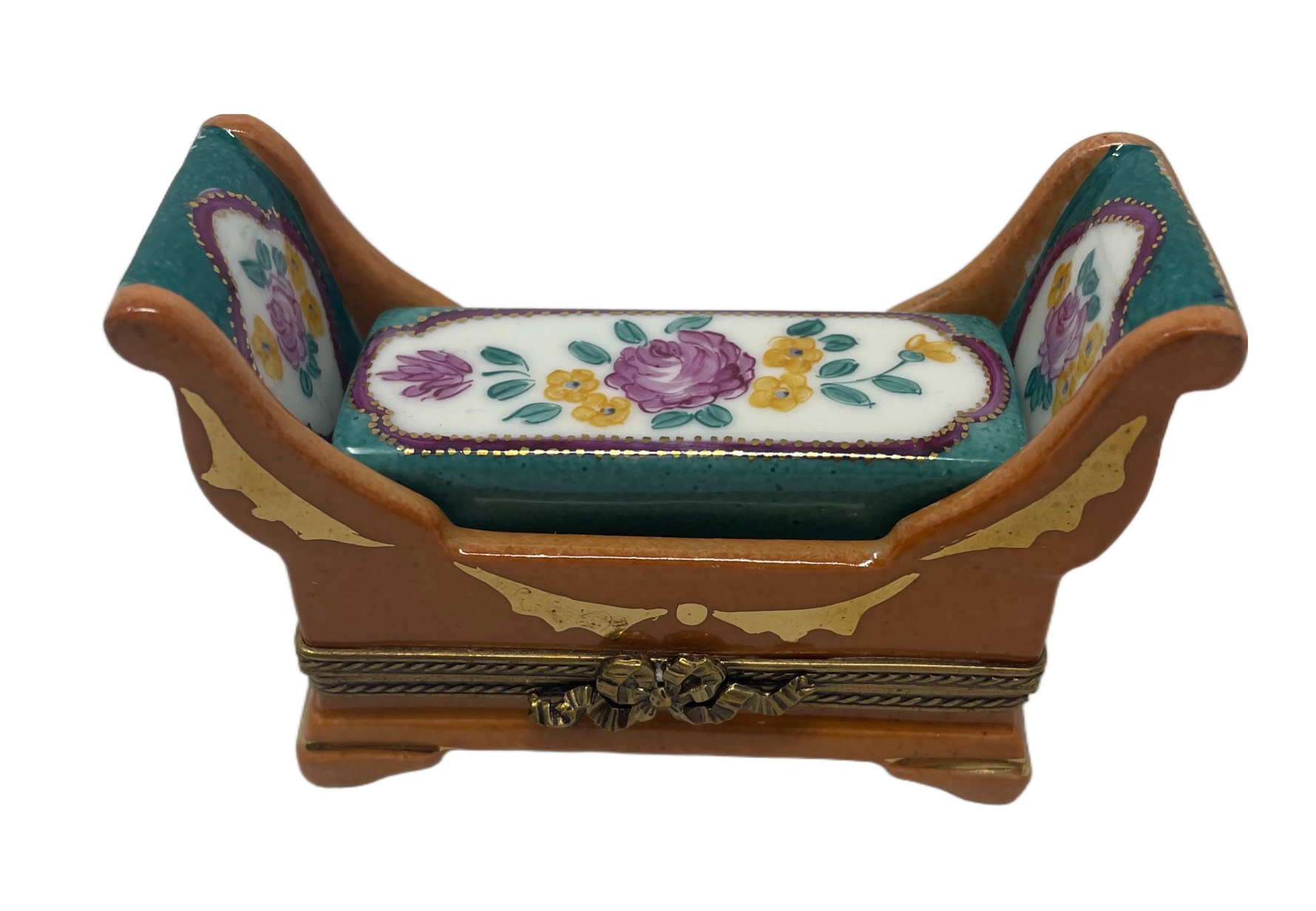 Tranquil Oasis: Brown and Teal Floral Resting Bench Limoges Box
