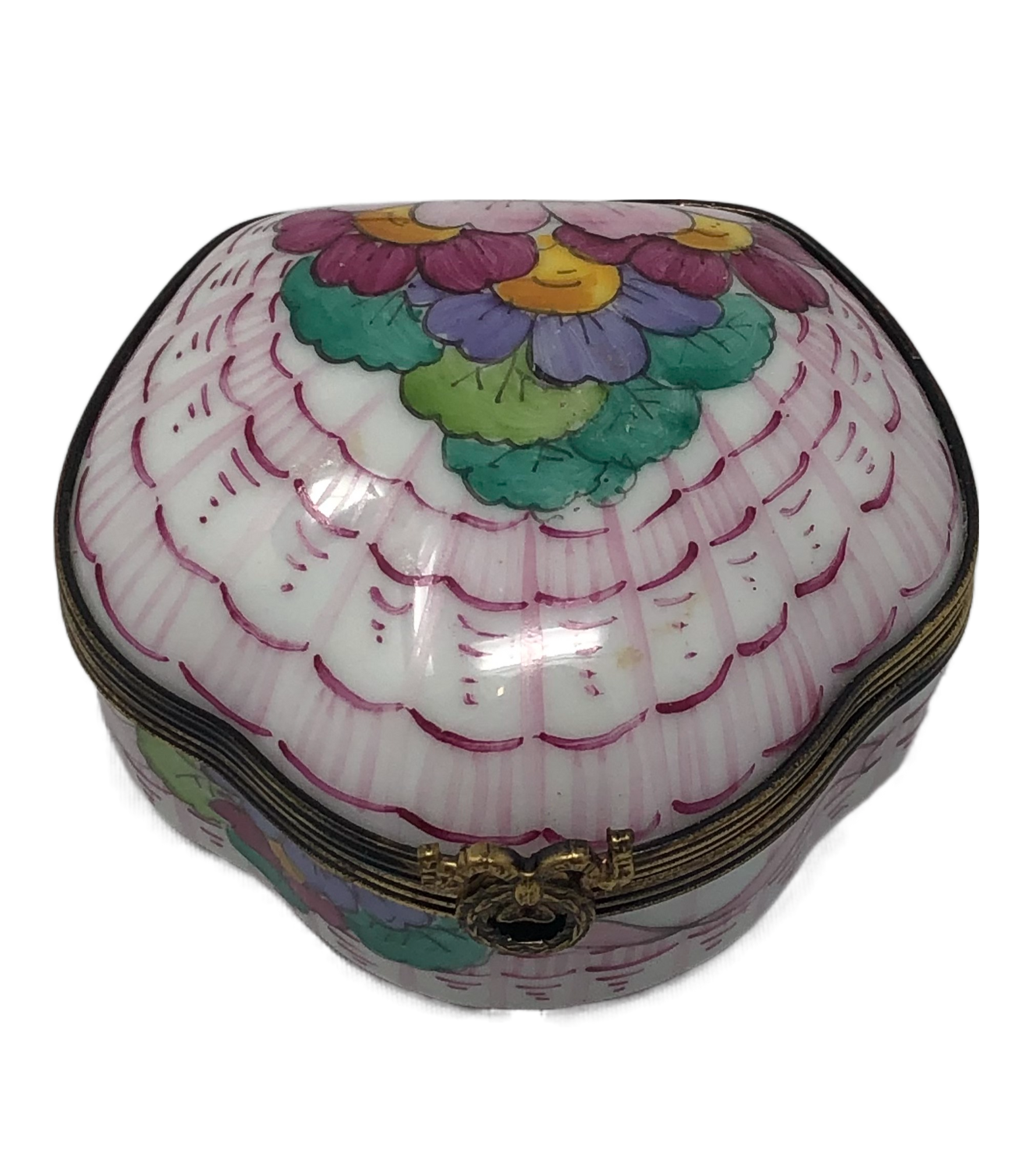 Handcrafted from fine Limoges porcelain, the shell-shaped box features intricate detailing and a glossy pink finish that exudes elegance and femininity. Each petal of the meticulously hand-painted flowers displays a burst of color, from delicate pinks and soft blues to radiant yellows and lush greens. The harmonious composition of the flowers creates a mesmerizing display that is sure to captivate hearts and inspire wonder.