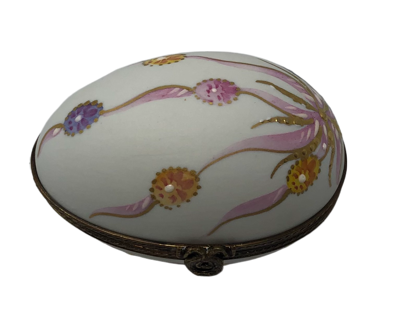 Whimsical Blooms: Matt White Egg Limoges Box with Pink Frills