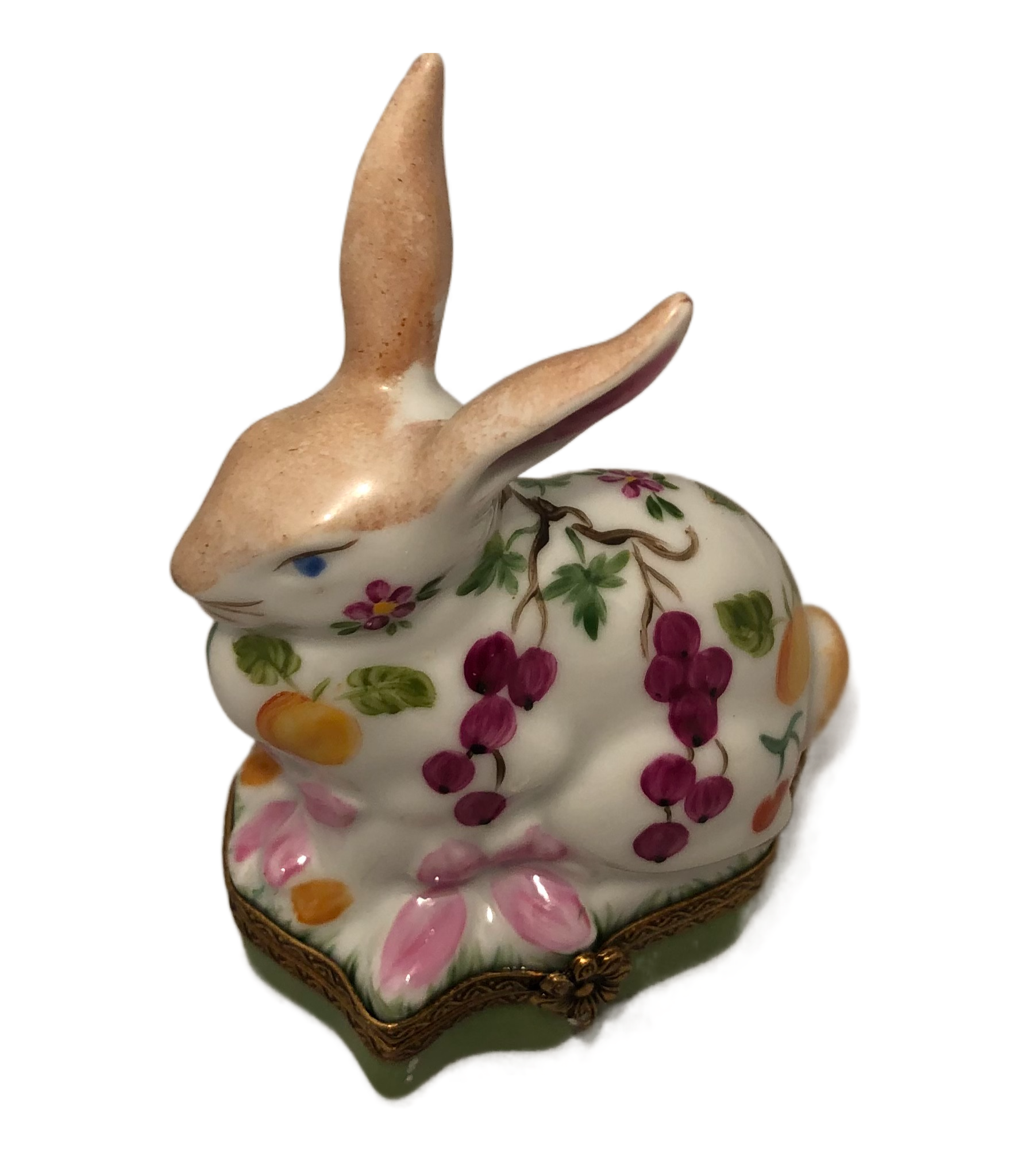 Whimsical Delights: Hand-Painted Limoges White Rabbit Box with Fruity Accents