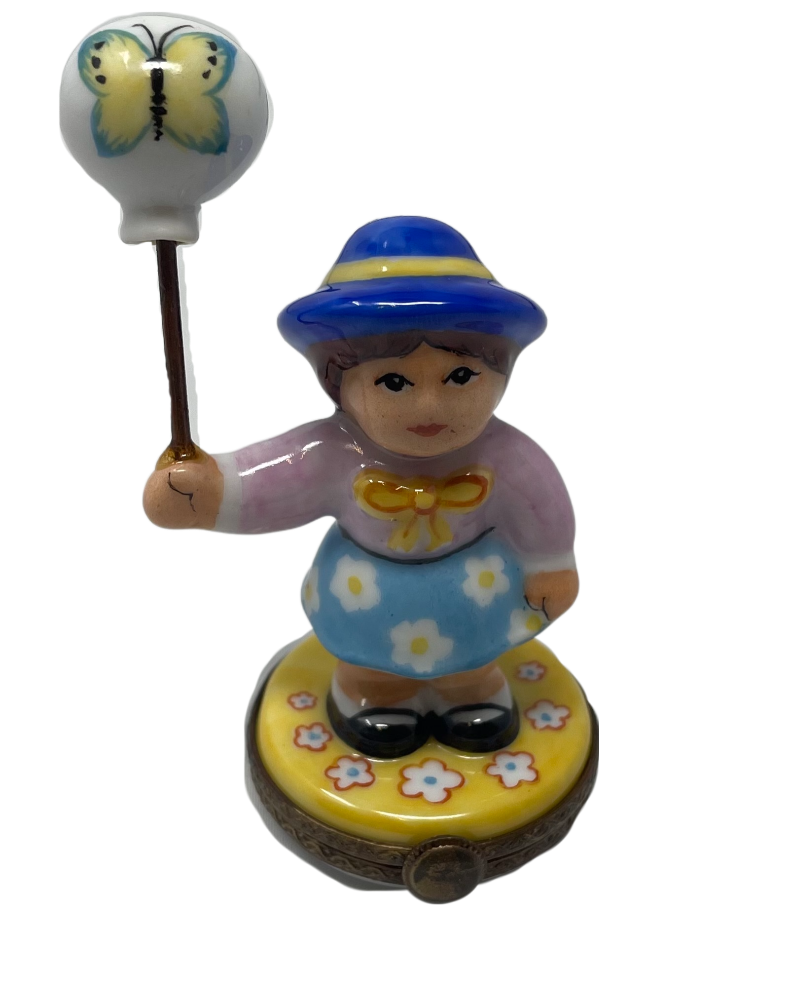 Whimsical Wonders: Limoges Box of a Girl with Butterfly Balloon