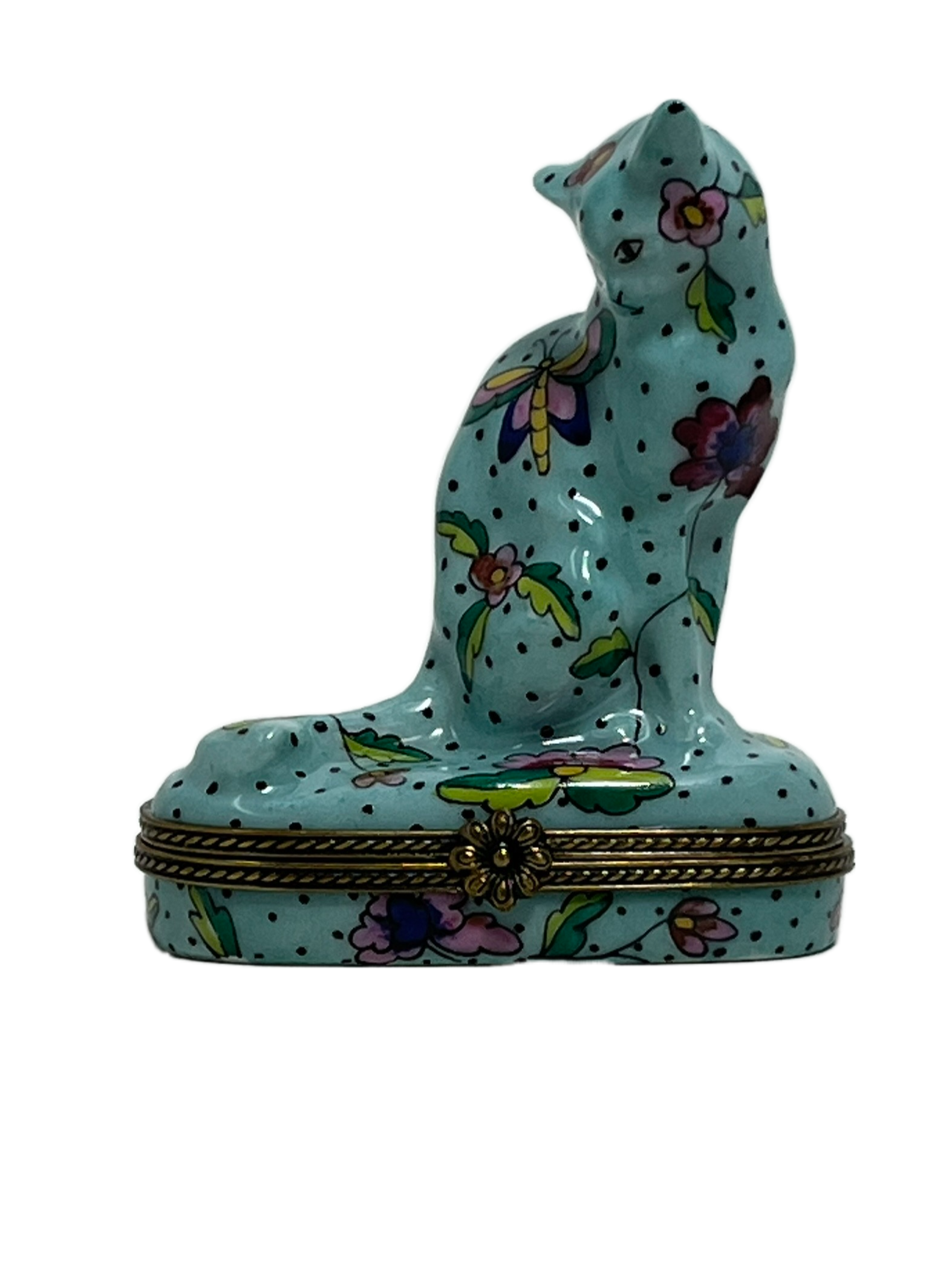Whiskers & Blooms: Limoges Box - Adorable Baby Blue Polka Dot Cat