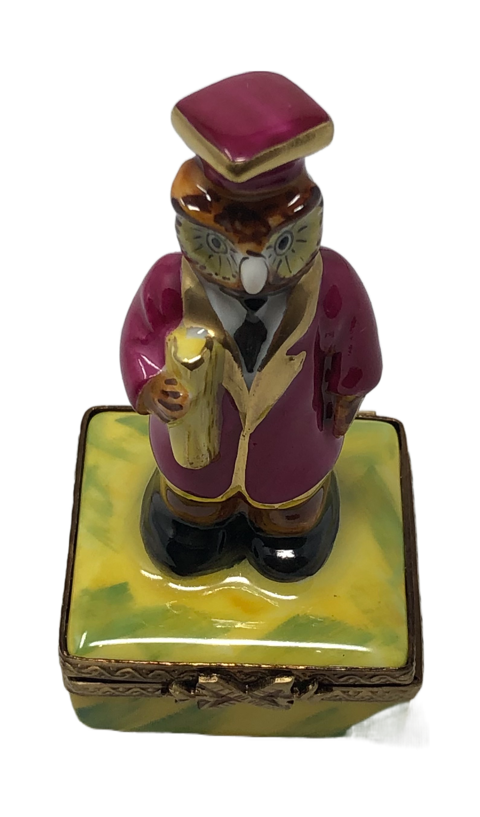 Wise Scholar: Maroon-robed Owl with Diploma Limoges Box